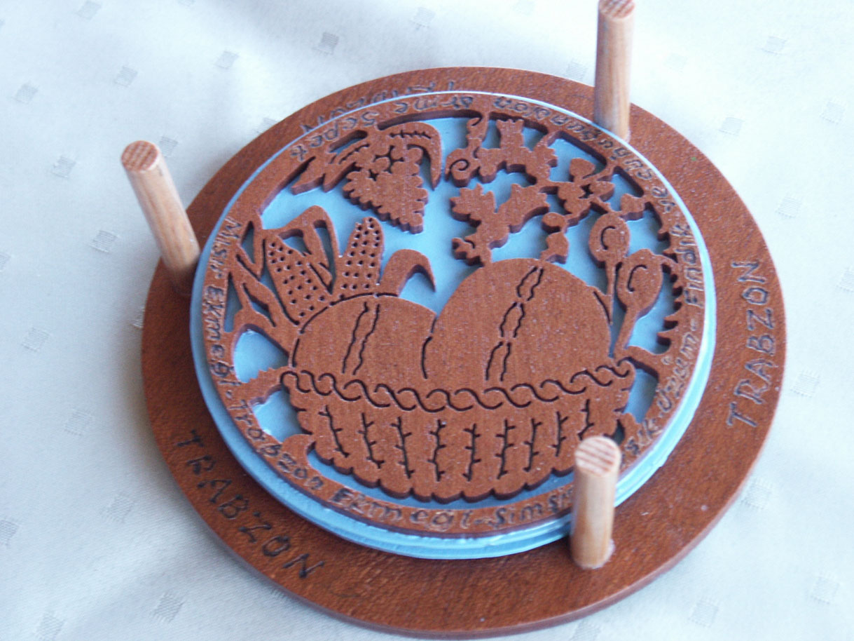 Çay, ülkemizin önemli bir içeceği. Onu ulusal ve kültürel değerlerimizin yansıtıldığı Ahşap plaka altlıkları kullanarak bütünleştirmek istedim.